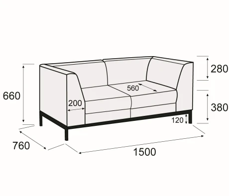 Диван 2-х местный Дельта